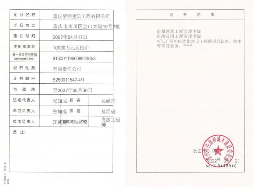 2022年7月5日,經(jīng)重慶市住房和城鄉(xiāng)建設(shè)委員會(huì)審核批準(zhǔn),億森建筑獲得房屋建筑工程、市政公用工程兩...